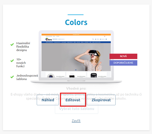 u vybrané šablony otevřete Možnosti a zvolíte Editovat.