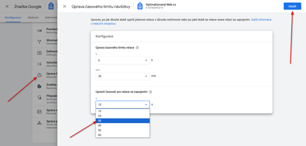 Návod, kde a jak upravit časovač pro relace se zapojením z 10 vteřin na 30 vteřin uvádí Zbyněk Hyrák na svém blogu v článku: Míra zapojení v Google Analytics 4, podle kterého můžete snadno provést nastavení (změnu) i vy sami. Určitě doporučujeme si jej podrobněji přečíst a postupovat podle jeho návodu.
