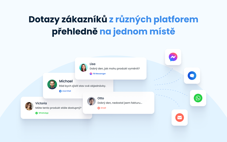 - Messenger & E-mail integrace – sjednoťte všechny zákaznické dotazy z různých platforem do jednoho dashboardu
