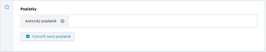 Poslední částí v záložce Ceny jsou Poplatky, např. recyklační, autorský atd. Všechny poplatky lze přesně definovat v administraci v části Nastavení/Poplatky.