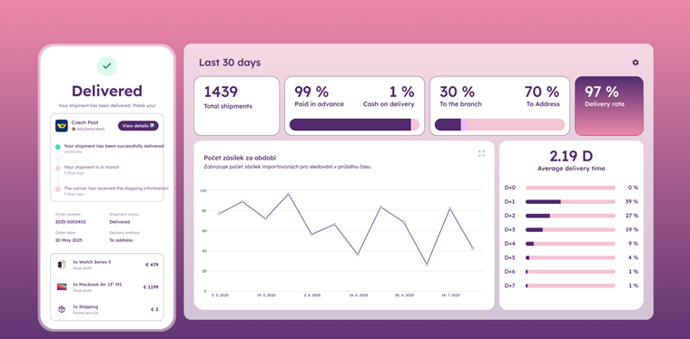 Sledování všech zásilek na trase E-SHOP → ZÁKAZNÍK napříč dopravci