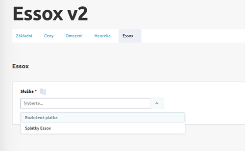 nová záložka Essox. V ní poté vyberete jakou službu pro danou platbu chcete využívat.