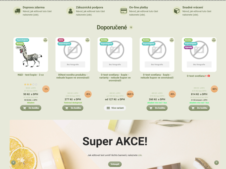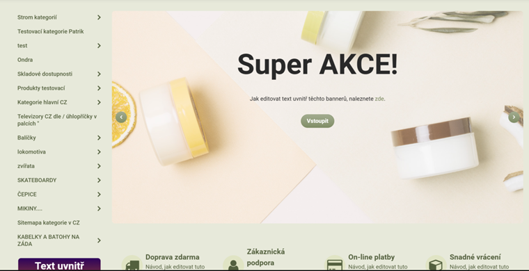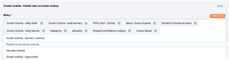 Díky tomu si můžete homepage přizpůsobit přesně podle typu sortimentu, sezóny nebo aktuální marketingové kampaně, a to bez zásahu do vlastních stylů.