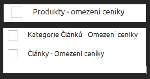 Byla přidána možnost exportovat a importovat omezení zobrazení pro jednotlivé ceníky pro zboží, kategorie článků a články.
