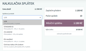 - Pro nákupy od 2 000 Kč do 30 000 Kč (možné i pro módní doplňky, domácí potřeby a další zboží či služby, které se běžně na splátky neprodávají)